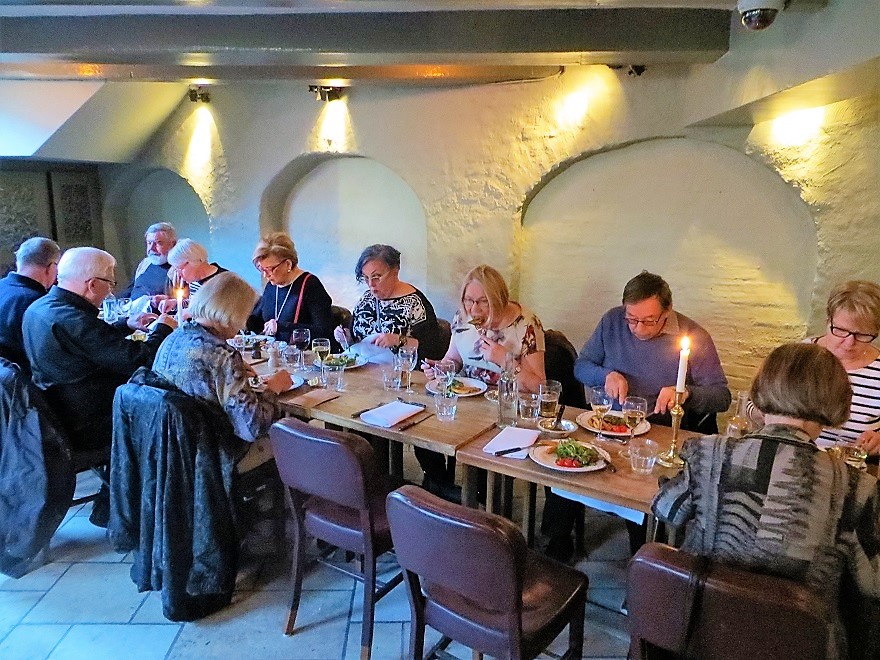 Lauantain tiivis ohjelma päättyi yhteiseen illalliseen Ruutikellarissa. Omatoimisesti ehdimme kuljeskella kaupungilla ensimmäisenä iltana ja lähtöpäivän aamuna. Meno- ja paluumatkan laivaosuuksilla taas saatoimme luoda kontakteja matkatovereihimme. Antoisa matka kaikin puolin!