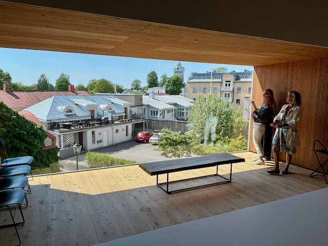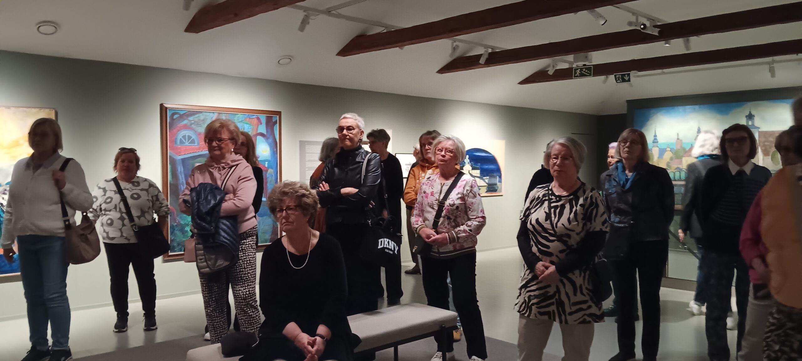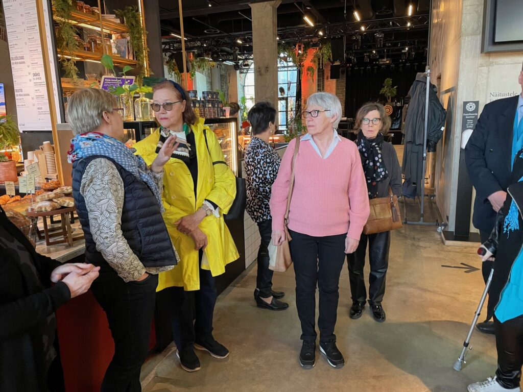 Raumalla matkaoppaanamme toimi museoamanuenssi Taina Myllyharju. Tutustuimme Rauman Taidemuseossa ensin Pinnala-näyttelyyn, jossa esillä on taideteoksia museon omista kokoelmista (mm. kuvassa Kerttu Horilan Nainen, 38v) ja Antti Laitisen ja Hanna Saarikosken töistä koostuvaan Sula II Molten -näyttelyyn. Taina ohjasi meidät vielä Vanhan kaupungin kujilta uuteen, Karin kampukseen, vuoden 2024 lopulla valmistuneeseen komeaan koulutuksen, liikunnan ja kulttuurin monitoimirakennukseen, jossa upeiden tilojen lisäksi ihailimme sinne sijoitettua taidetta. Lounaan nautimme kauniissa Villa Tallbossa.