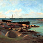 Lahjoitus 5: 17.2.1982, Victor Westerholm, Rantamaisema Eckeröstä, 1884, öljy kankaalle, 24 x 43 cm